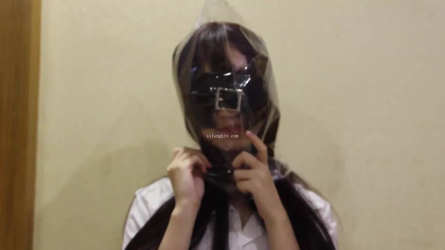 自分でビニール服をかぶりだす変態OL→ロープでセルフ首絞め→自分の両手で首絞め→ご主人様による徹底呼吸制御