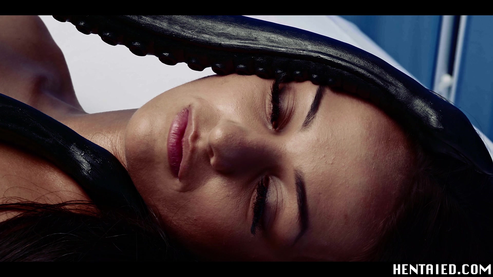 彼は触手の一本で彼女の首を掴み、しっかりと固定しながら、彼女のアソコを探り続け、エイリアン・ボンデージの醍醐味を教えてくれる。彼女がよがり、快感が最高潮に達したところで、ミスター・エイリアンは再び彼女の喉の奥を探り始める。この激しさは想像もつかないだろうが、ハニーンにはわかる。