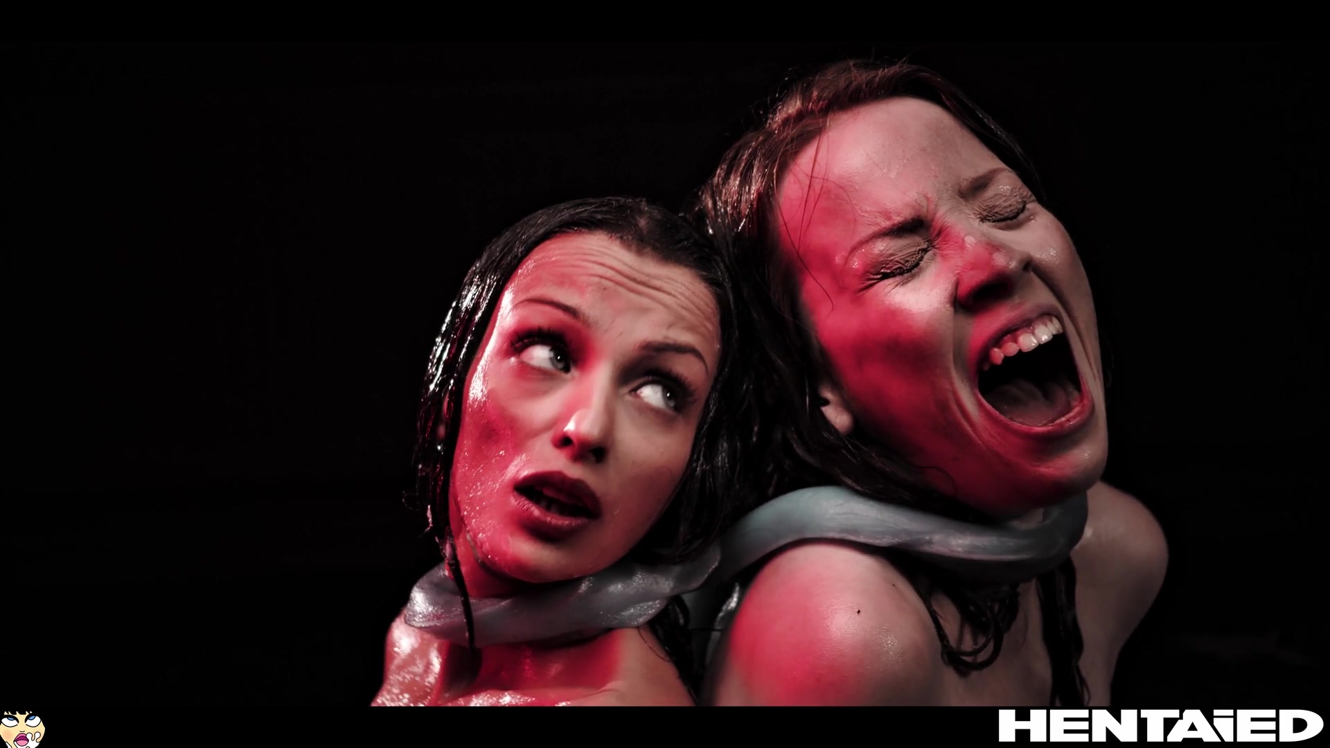 ロッティとハニーンは白いドロドロの水たまり(おそらく前の被験者のザーメンや潮吹きだろう)の床に横たわっている。二人の身体はすでにザーメンまみれだ。ロッティは最初にエイリアンに幽閉され、ハニーンは他の触手に追われる。女性たちは青い巨大な生物に縛られていた。ある触手は彼女たちの首を這い、ある触手は彼女たちの濡れた穴を犯そうと躍起になっている。ハニーンのアソコには、最も大きな青い触手がある。その巨大な頭部が小さな穴を貫き、ハニーンは性的快感の頂点に達する。