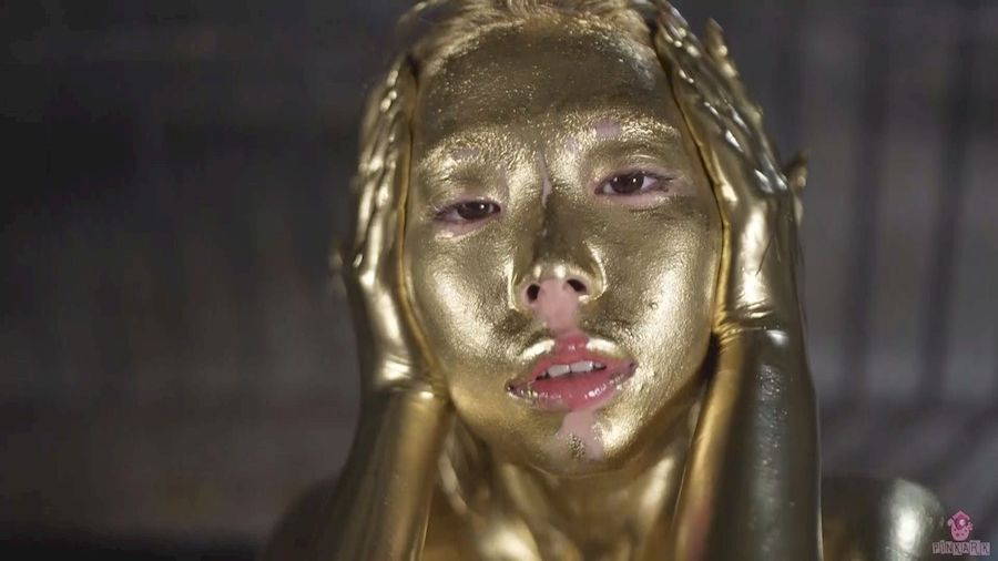 鼻フックを着けゴールドチンポをフェラ!金粉をたっぷりと口に含みデロデロ垂れ流し!チンポをアナルに挿入すると金粉でニュルンニュルンの今までにない感覚に大絶叫イキ!ぽっかり空いたゴールドアナルからゴポゴポッと金粉が零れ落ちる!尻穴交尾でビクビク痙攣しながら絶頂し、頭から金粉をぶっかけられて悶えるアナル美女!