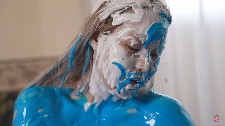 そしてブルーメッシーを塗り始めたメル。顔は少し残しておいて身体を青く染めてディルドオナニー!ディルドを本物のチンポのようにパイズリ!仕上げはブルーメッシーをアタマから被って完全にブルーに染まり、パンティーを脱いでオナニー!ポテポテとメッシーが滴るところが素敵です!潮を吹きながらイキまくるメルのブルーな喘ぎ顔をお楽しみください!!