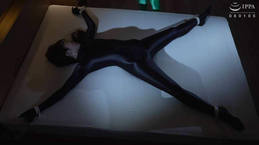 大の字に拘束されもがくツルスベゼンタイを着せられためぐを同じくツルスベゼンタイを着たリアルフェチ男性が欲望の赴くままにスリスリ責めまくる・・・!